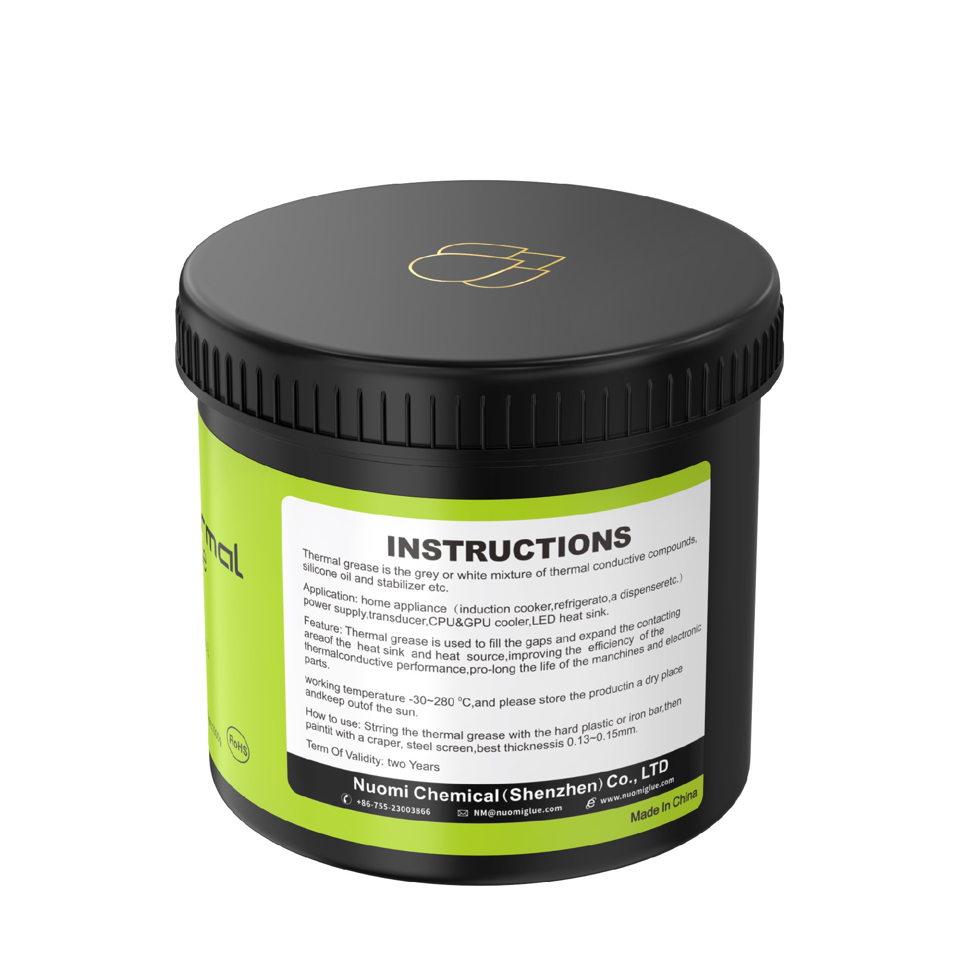 Thermally conductive silicone grease uses organosilicon as the main raw material and adds heat-resistant and thermally conductive materials to make a thermally conductive silicone grease-like compound for use in high-power radiators, transistors, electronics, LED, CPU and other electronic components. The heat conduction and heat dissipation of the device to ensure the stability of the electrical performance of electronic instruments, meters etc.